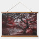 Spectacular Red cherry blossoms branching out from an old oak tree