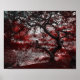 Spectacular Red cherry blossoms branching out from an old oak tree