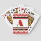 Custom Bicycle brand playing cards, personalised with your initial and text. This deck of cards is design with a red & white zigzag chevron pattern, with red, black, and white, lines. "Own" the game at your next gathering, or give as a gift at any occasion.