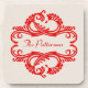 Elegant and sophisticated Chic Damask Coaster Set featuring a soft beige background and a stylish damask flourish embellishment in dark red. This modern design is easy to customise with your own text. Click "Customise It" to find more personalisation options.