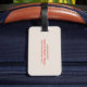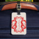 Elegant and sophisticated Chic Damask Luggage Tag featuring a soft beige background and a stylish damask flourish embellishment in dark red. This modern design is easy to customise with your own text. Click "Customise It" to find more personalisation options.
