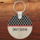 Modern and stylish Chic Quatrefoil Sweet Sixteen Keychain featuring a trendy moroccan pattern background, a vintage paper look background and a pair of thin dark red stripes. This hip and elegant keychain is perfect for a super fun sweet 16 party favour! Easy to customise, simply add your own personalised text. Click "Customise It" to find more personalisation options.
