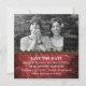 Funky and offbeat Chic Steampunk Photo Save the Date Announcement featuring a grunge gear pattern background in dark red and a hounds-tooth pattern digital art flat ribbon border in dark brown. This alternative design would be perfect for announcing a vintage steampunk themed wedding! Easy to customise, simply add your wedding details and a photo to make this design your own. Click on "Customise It" to find more personalisation options.