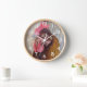 For chicken and rooster fans! Decorate a wall space with this poultry themed wall clock with white numerals that features the photo image of a red chicken hen. Perfect for a country home decor or farm house. Select your clock style and size along with hand colour.