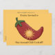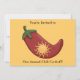 Customisable chilli cook-off design for a spring or summer holiday, housewarming, graduation, birthday, or retirement party, or any gathering. Invitation features a fun, colourful Western design with a big red chilli pepper stuffed with a bright golden yellow sun. Chile relleno! Cowboy and cowgirl design on the back. With a little help from my friends at www.scrappindoodles.com. Look for mix or match stamps from She Wolf Medicine.