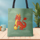 Red Chinese Dragon on Green Tote Bag