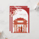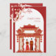 Red Chinese wedding couple temple cherry blossom Invitation
