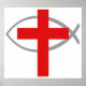 Red Christian Cross With the Jesus Fish Ichthys Poster
