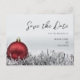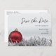 Red Christmas ball & silver garland Save the Date Postcard