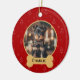 Celebrate your furry friend this holiday season with a personalized pet photo Christmas ornament. This festive red ornament features a cute Christmas pattern, a customizable photo, and a custom name tag in the shape of a bone.