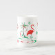 A fun, festive, flamingo design with a retro touch in red and green. A red flamingo wades in the water next to palm trees decorated with Christmas baubles and ribbon. A customisable design for you to personalise with your own text, images and ideas. An original digital art image created by Jess Perry.