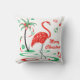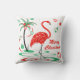 A fun, festive, flamingo design with a retro touch in red and green. A red flamingo wades in the water next to palm trees decorated with Christmas baubles and ribbon. A customisable design for you to personalise with your own text, images and ideas. An original digital art image created by Jess Perry.