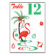 A fun, festive, flamingo design with a retro touch in red and green. A red flamingo wades in the water next to a palm tree decorated with Christmas baubles and ribbon. A customisable design for you to personalise with your own text, images and ideas. An original digital art image created by Jess Perry.