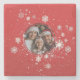 Red Christmas Frame with Snow Flakes Stone Coaster