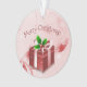 Add a whimsical touch to your Christmas tree with a Red Christmas Gift Ornament. Ornament design features a vibrant red Christmas gift adorned with holly berries and falling snowflakes against an elegant scroll and leaves background. Additional gift and holiday items available with this design as well.