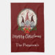 Red Christmas Gnomes Trendy Elves Tea Towel