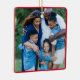 Ceramic Ornament for Christmas and New Year. On one side, in green with red font, you can write your wishes. It also features a line drawing of Christmas decorations. On the back, you can put your photo and indicate the upcoming year.