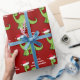 Red Christmas Kids Dinosaur Cute Personalised Wrapping Paper