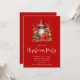Red Christmas Lantern Poinsettia and Pine Party Invitation