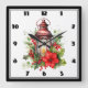 Red Christmas Lantern Poinsettia and Pine Square Wall Clock