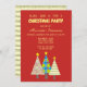 Simple, cute, modern, red Christmas party invitation, with colourful pine trees, vintage patterns trendy script.