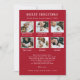 Red Christmas Photo Collage Holiday Card. Elevate your heartfelt sentiments with our chic 'Merry Christmas' personalised photo holiday card. This stylish keepsake, featuring a vintage typewriter font and space for 7 (front and back) family photos, is a perfect blend of nostalgia and style. White text on a green background amplifies its visual appeal. Personalise and make your memories timeless!