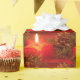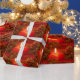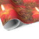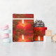 Christmas wrapping paper with red star shaped candle, pine cones and Christmas tree branches, tiled image.