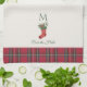 stylish red black tartan,rustic christmas custom monogram,personalised customised kitchen towel,personal name check pattern,deck the halls dishcloth,add your own text,merry xmas family surname,fancy plaid initialled initial,classic traditional berries holly,christmassy xmasy pine stocking