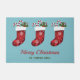 Red Christmas Stockings On Blue With Custom Text Doormat