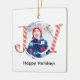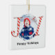 Red Christmas Stripes Photo Joy Typography Ceramic Ornament