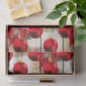Bright red Christmas tree ornaments and light tan flowers sit on top of a white/ivory wood background. Great for decoupage artwork, paper crafts, or gift wrapping. Make sure to check out the matching gift bag!
