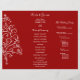 Give your guests the order of your December marriage ceremony with the seasonal Red Christmas Tree Winter Tri Fold Wedding Program. These festive custom wintery Trifold Wedding Programs features a white intricate xmas tree design on a red background.