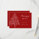 Customise the festive Red Christmas Tree Winter Wedding RSVP Response Card with your December marriage reply date. This elegant custom wintery r.s.v.p. card features an intricate white Christmas tree design on a red background.