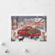 Red Christmas Truck in village with puppies Holiday Card