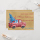 A lovely watercolor illustration featuring the famous red Christmas truck packed with a decorated Christmas tree, presents, and baubles on a gold foil texture background. We have added a rhyming holiday message, but feel free to change it. Personalise the card with your favourite family photo and send it to your loved ones.