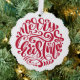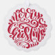 Red Christmas Typography Personalised Photo round ornament card from Ricaso - featuring a wonderful modern scrolled typography to the front, your photograph and text to the back. This ornament card not only makes a wonderful holiday greeting but it can be hung on the tree for years to come.