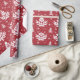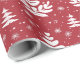 Brightly coloured wrapping paper brings holiday cheer, featuring whimsical white trees, snowflakes, and decorative elements. Perfect for wrapping gifts during the festive season.