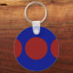 This bold geometric pattern features a red circle in the centre and two red half circles on the edges of a blue background.