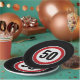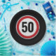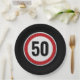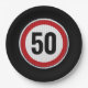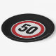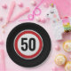 Red circular road sign with custom age birthday paper plate