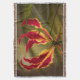 Fire lily on a throw blanket. Fire lily - is flowering plant,common names include flame lily, climbing lily, creeping lily, glory lily, gloriosa lily, tiger claw, fire lily, Gloriosa superba. It is climbing flower. National flower of Zimbabwe.