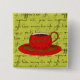 Red Coffee Cup Art on Lime Green Script Words 15 Cm Square Badge