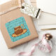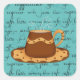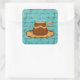 Red Coffee Cup Art on Turquoise Script Words Square Sticker