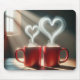 Red Coffee Mugs With Steamy Hearts Mouse Pad