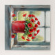 Floral puzzle. A gorgeous ai watercolor illustration of red poppies in a red tin painted coffee can sitting on a window sill on a summer day.