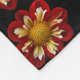 Stay nice and warm by snuggling next to this soft and cosy fleece blanket that features the photo image of a red Collarette Dahlia flower with white, inner petals on a black background and printed in a repeating pattern. A fun, floral design! Select your blanket size. Image printed on one side only.