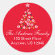 Add a festive finishing touch to your holiday mail with this red colourful Christmas tree round address label. The design features a modern Christmas tree made of colourful snowflakes and stars on a sleek red background, paired with elegant white script and serif font for your family name and address. Perfect for sealing envelopes or adding seasonal charm to holiday cards, party invitations, and Christmas letters. Customisable with your name, street address, city, state, and ZIP code, this stylish holiday label combines function with festive flair for a polished look.