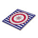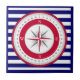 Red Compass Rose Blue and White Stripe Ceramic Tile