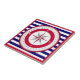 Red Compass Rose Blue and White Stripe Ceramic Tile