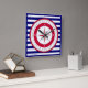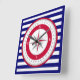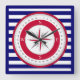 Red Compass Rose Blue and White Stripe Square Wall Clock