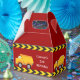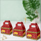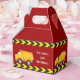 Cool custom construction excavator birthday party favour boxes in red for a child who loves yellow construction vehicles. Fun vehicle favours for a little boy who loves cars and trucks. Customise with your kid's name between the black and yellow caution tape.